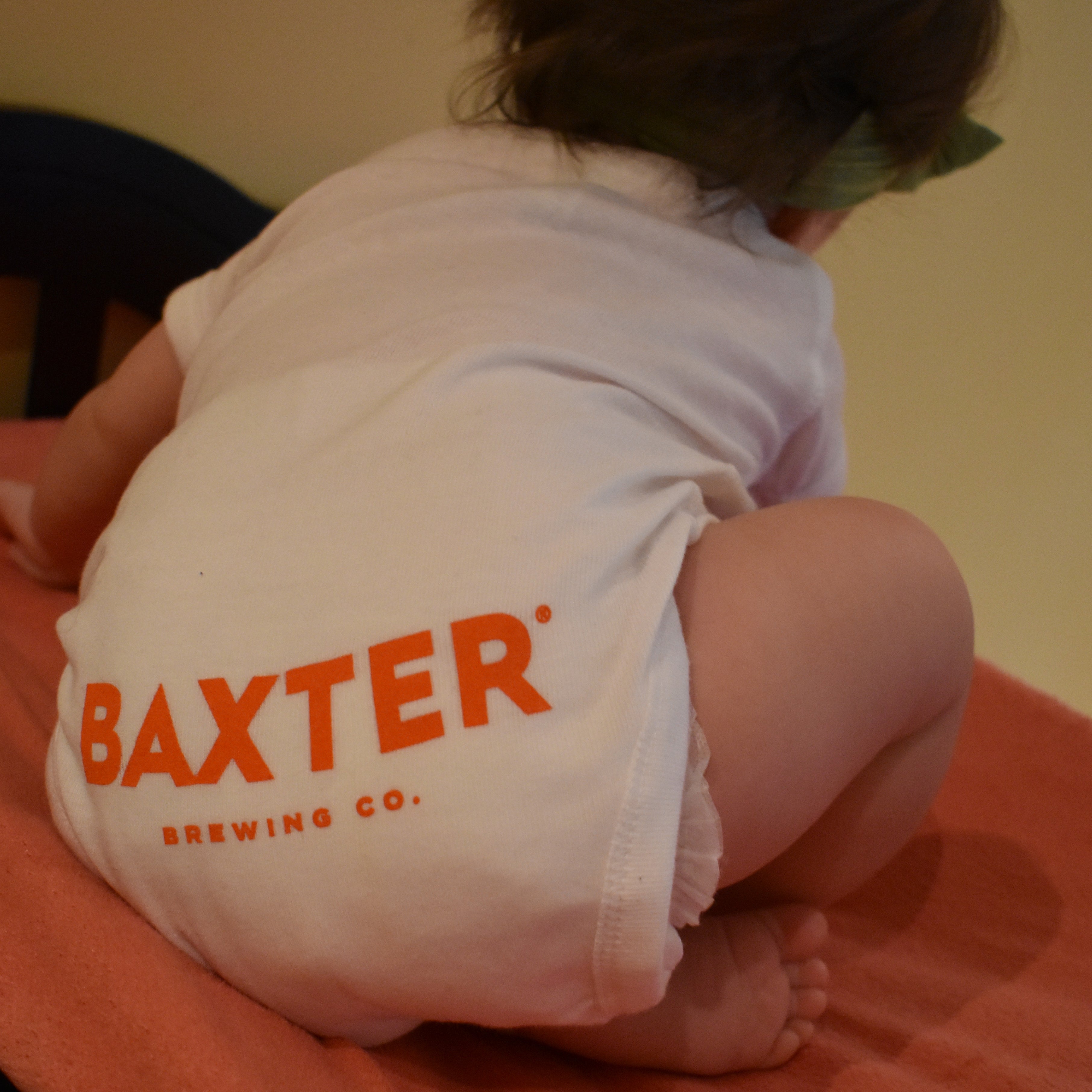There's nothing more adorable than a half pint in brewery swag. The best new baby gift! I heart CANS in the front, Baxter Brewing Co. on the bum!